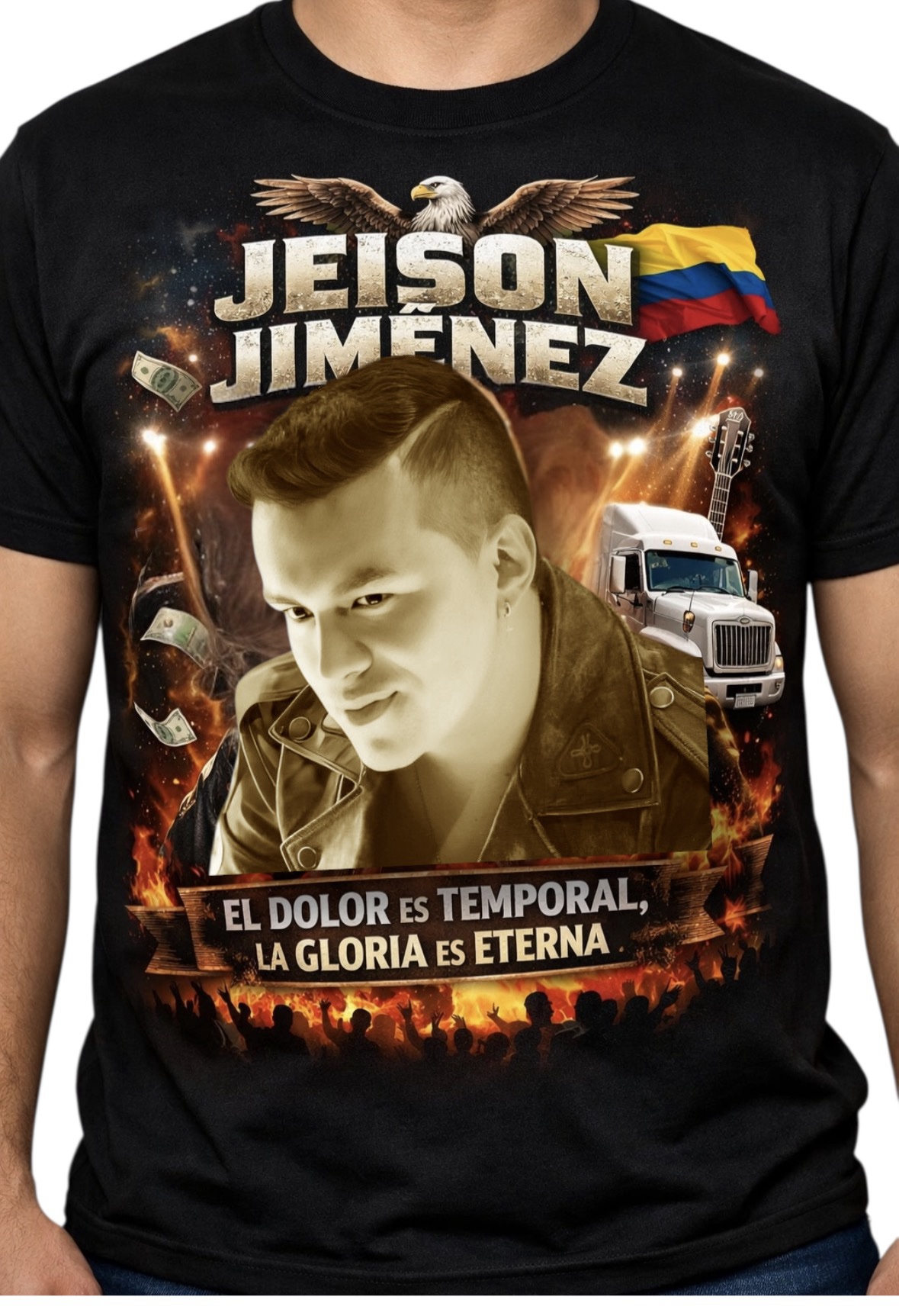 Camiseta en algodón licrado de alta calidad y granate color negro con diseño Jeison Jiménez